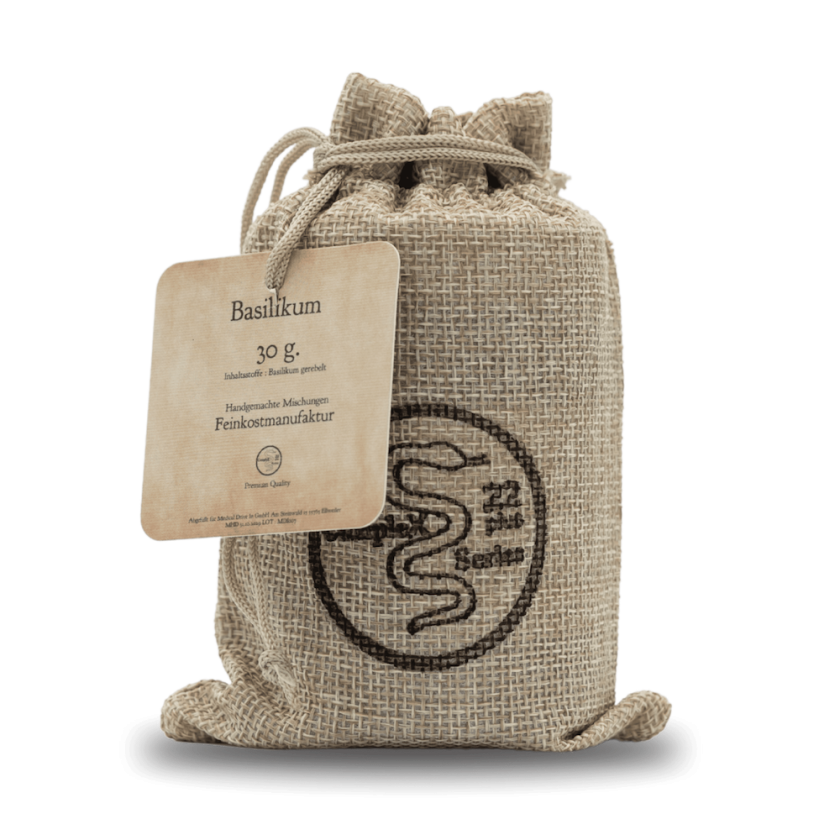 Basilikum steht für Frische, Leichtigkeit und einen klaren, grünen Charakter. Sein Duft und Aroma wirken belebend und ausgleichend zugleich und werden oft mit Momenten von Ruhe, Genuss und innerer Ordnung verbunden. Basilikum bringt eine sanfte Balance ins Geschmackserlebnis und spricht nicht nur den Gaumen, sondern auch die Sinne an.