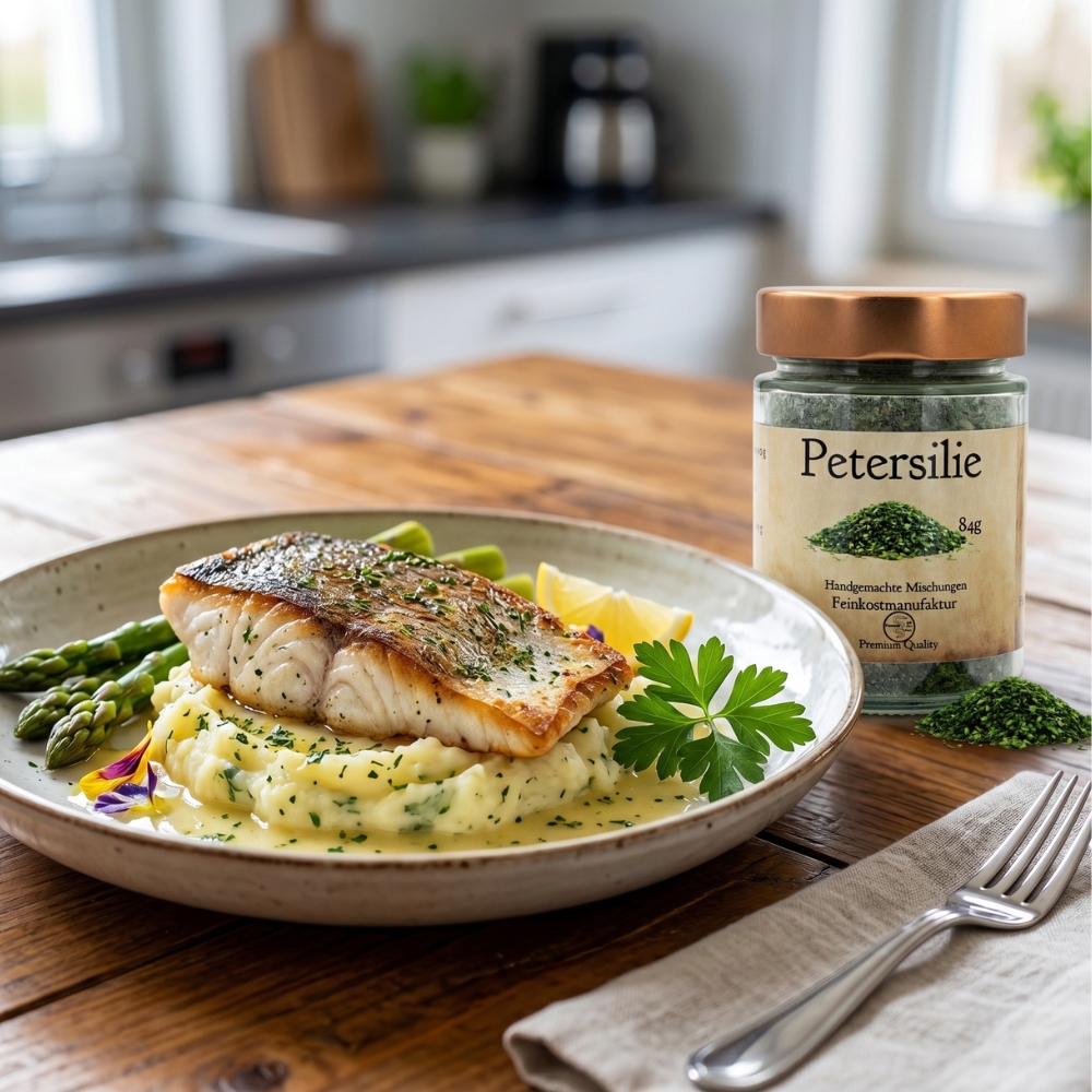 Mein Petersiliengewürz /Zutaten wie Petersilie, Zwiebeln, Meersalz und Knoblauch verleiht den frischen, grünen Kontrast