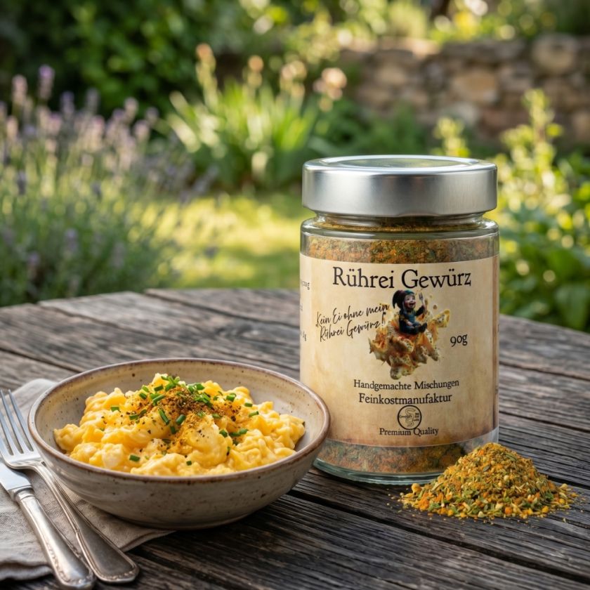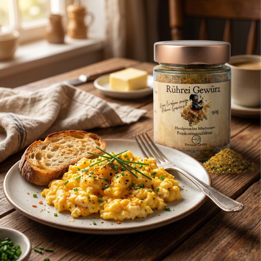 Ohne Rühreigewürz ist dein Ei fad, ohne das Petersiliengewürz ist es langweilig. „Erlebe das wohl beste Rührei deines Lebens. Unsere fein abgestimmte Rührei Mischung ist das Geheimnis für ein Frühstück, das nach Kindheit, Frische und purer Leidenschaft schmeckt. Einmal probiert, willst du dein Ei nie wieder anders.“!