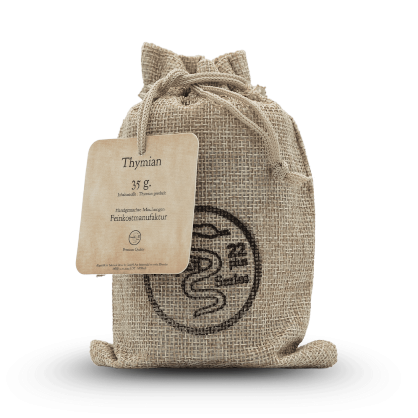 Thymian entfaltet ein kräftiges, würziges Aroma, das als präsent und belebend wahrgenommen wird. Sein Duft und Geschmack sorgen für Tiefe und Intensität und prägen das Gesamterlebnis deutlich, ohne aufdringlich zu wirken.