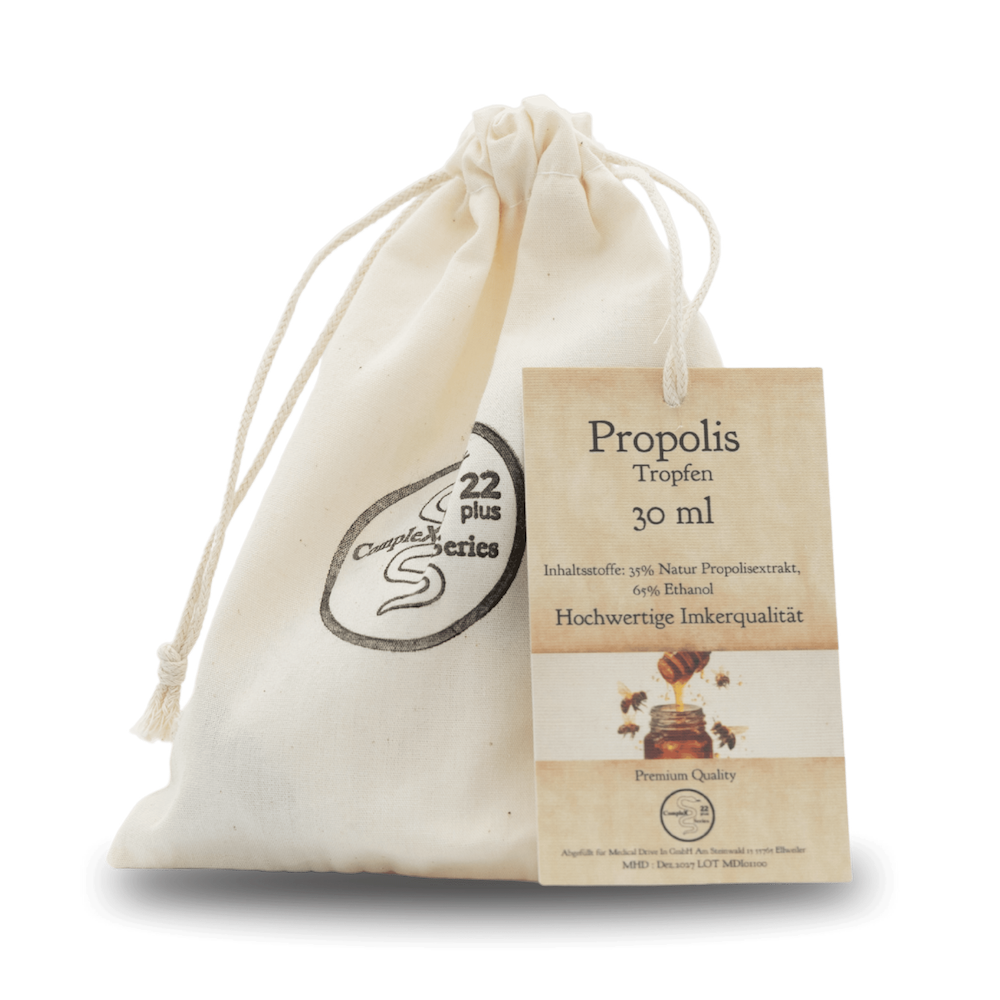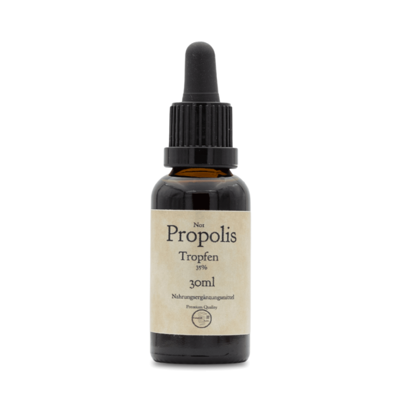 Propolis wird, wie alle Bienenprodukte, bereits seit der antiken Zeit verwendet. Die Bienen produzieren Propolis, auch Kittharz genannt, aus Harzen von Knospen und Zweigen von Bäumen und Kräutern. Sie bauen aus dieser Harzsubstanz Schutzgitter. Diese dienen dazu, Eindringlinge vom Bienenstock fernzuhalten und die heimkehrenden Arbeitsbienen beim Einfliegen in den Bienenstock zu desinfizieren. So schützen sich die Bienenvölker vor Bakterien , Viren und Pilzbefall. Unsere Propolis Tinktur beziehen wir von einem renommierten Imker in absoluter Premiumqualität