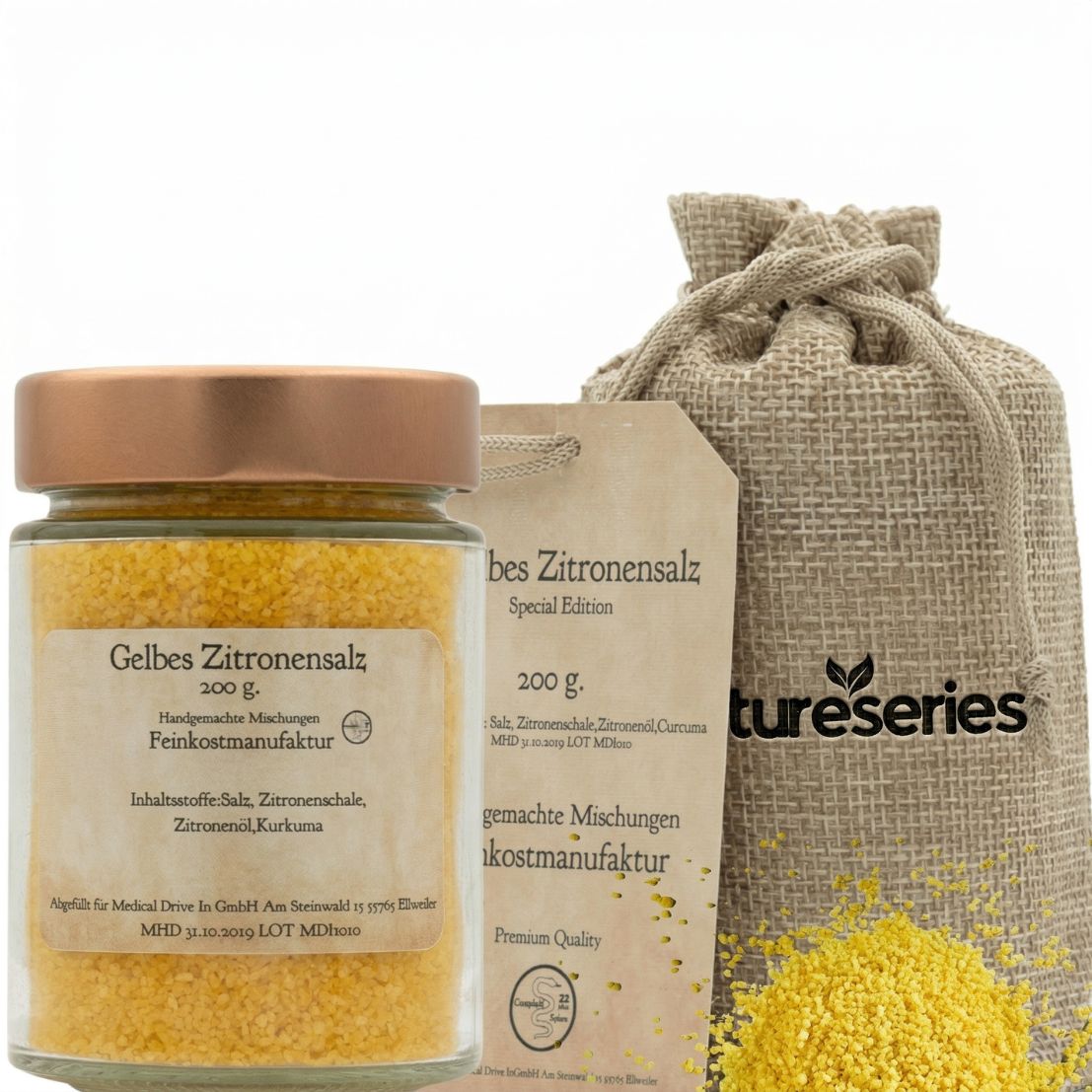 Salz, Zitronenschale, Zitronenöl, Kurkuma, Zitronensalz