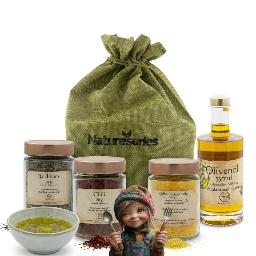 “Meine Dressingwerkstatt”, Chili,Basilikum,Zitronensalz ,Olivenöl im Set